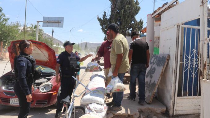 Ciudad Juárez.- Agentes de la Secretaría de Seguridad Pública Municipal se organizaron para realizar una donación en especie y entregar ropa y despensas a familias vulnerables de la colonia Fronteriza, afectadas por las recientes lluvias.