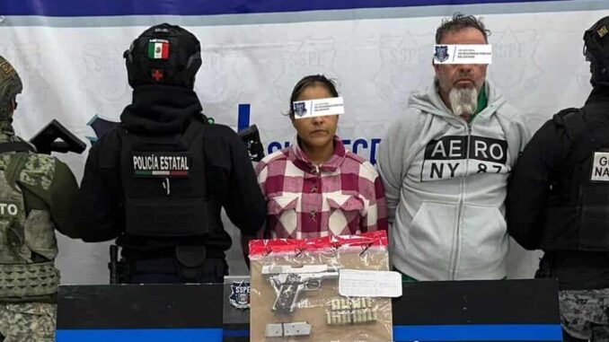 Al realizar la revisión correspondiente e identificar a la pareja, se localizó el arma de fuego en el vehículo, además de que, al revisar el estatus del vehículo se confirmó el reporte de robo en 2023. Estos hechos derivaron en el formal arresto de la pareja, para posteriormente ser puestos a disposición del Ministerio Público para dar continuidad a las indagatorias correspondientes.