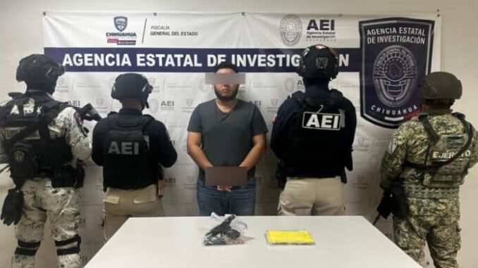 Elementos de la Agencia Estatal de Investigación (AEI), adscritos al Centro de Operaciones Estratégicas (COE), de la Fiscalía de Distrito Zona Norte, detuvieron en los términos de la flagrancia, a quien se identificó como Héctor Adrián M. A., por su presunta responsabilidad en el delito posesión ilegal de arma de fuego, en Ciudad Juárez.