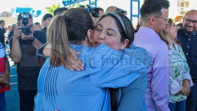 Chihuahua, Chih.- La diputada del Partido Acción Nacional (PAN), Nancy «La China» Frías, acompañó a la presidenta del Sindicato de Trabajadores del Gobierno del Estado, Xóchitl Reyes, y al presidente municipal de Chihuahua, Marco Bonilla, en la inauguración del nuevo domo de usos múltiples ubicado en las canchas del salón Pinos Altos.