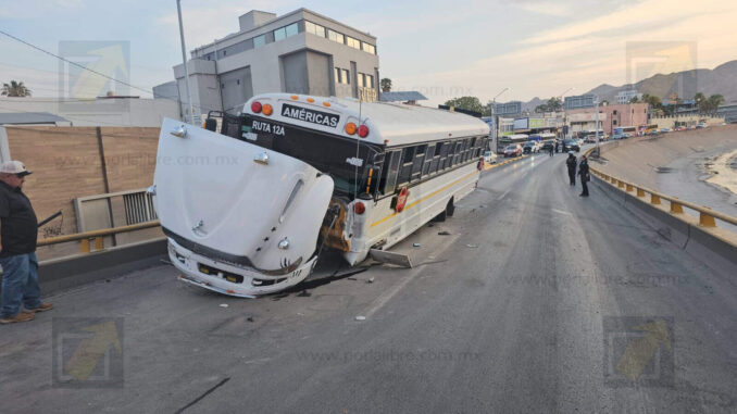 El vehículo terminó impactado contra la valla de contención del puente que cruza la calle 27, en las inmediaciones de la colonia Santo Niño. El percance ocurrió alrededor de las 5:30 de la mañana y movilizó a unidades de la Policía Municipal, quienes acudieron al lugar para brindar auxilio inmediato y trasladar a varios de los lesionados en patrullas a distintos hospitales de la ciudad.