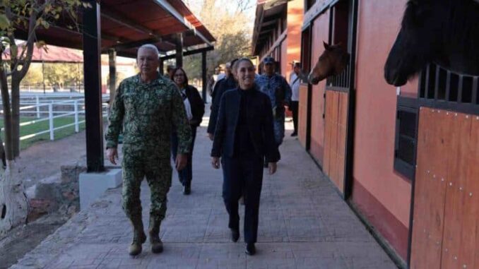 Claudia Sheinbaum y general secretario Trevilla visitan el Campo Militar de Santa Gertrudis, en Chihuahua