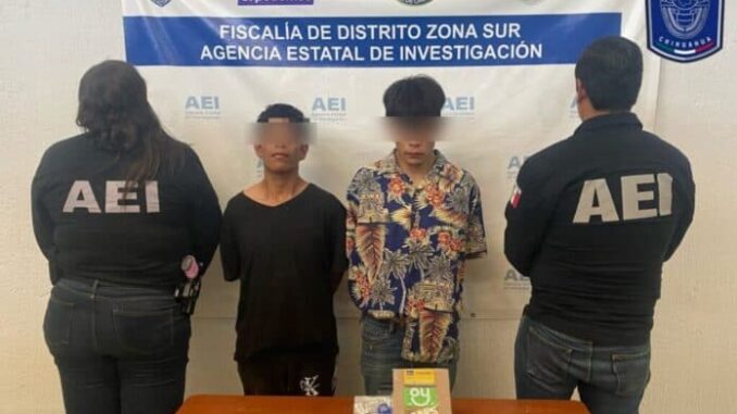 Como resultado de una oportuna intervención, elementos de la Agencia Estatal de Investigación (AEI) detuvieron a dos masculinos de nombres Daniel M. B., y Bryan Ulises T. B., por el robo de una cartera del interior de un automóvil en la colonia Héroes de la Revolución, en la ciudad de Parral.