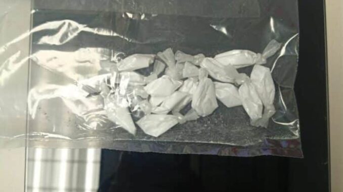Tras una inspección, detectaron los oficiales que tenía entre sus pertenencias 14 envoltorios de plástico que contenían una sustancia química en polvo de color blanco, con las características propias de la cocaína, con un peso de 12 gramos.