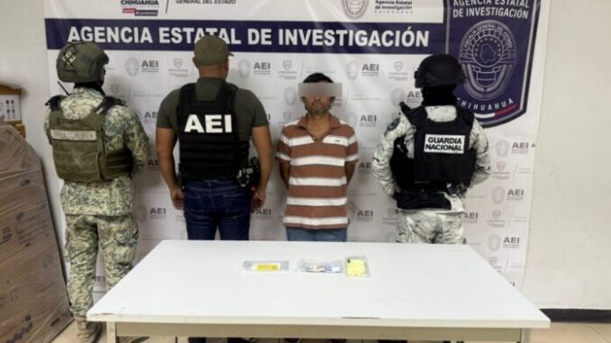 Elementos de la Agencia Estatal de Investigación de la Fiscalía de Distrito Zona Norte, detuvieron en flagrancia a quien se identificó como Mario Roberto M. G. por el delito de extorsión, cometido en Ciudad Juárez.