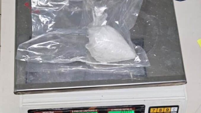 Por lo anterior, procedieron a realzarle una inspección y detectaron que entre sus pertenencias tenía una bolsa con envoltorios con una sustancia granulada con las características del cristal, con un peso de 105 gramos.