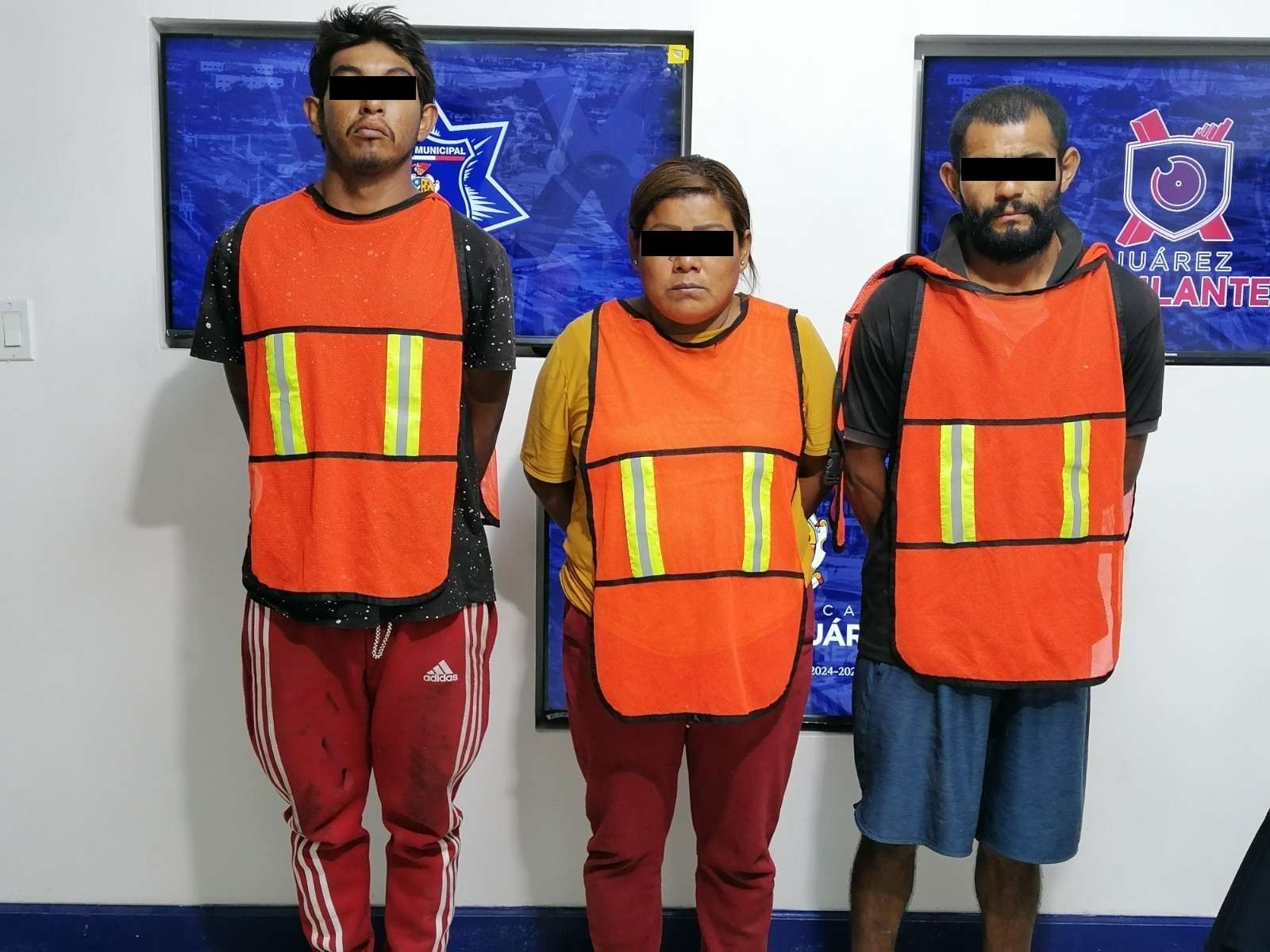 José Alejandro A. L. de 24 años, Isabel C. L. de 38 años, José Alberto G. S. de 34 años, y una adolescente de 15 años, fueron detenidos en el cruce de las calles Del Chabacano y Del Naranjo, en la colonia Lomas de Poleo, al ser sorprendidos desmantelando dos vehículos uno de la marca Honda Accord, color blanco, modelo 1996 con reporte de robo del 06 de octubre de 2025 y una Dodge Ram, color azul, modelo 1998 con reporte de robo del 08 de octubre de 2025.