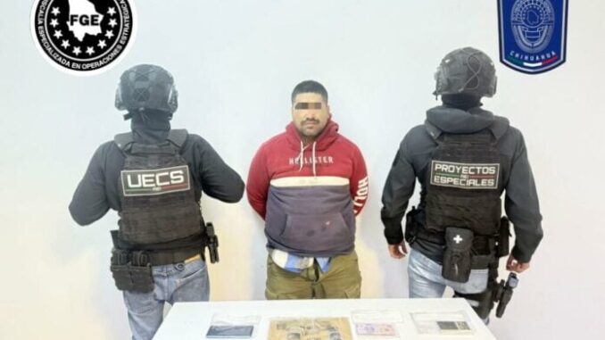Elementos de la Fiscalía Especializada en Operaciones Estratégicas (FEOE) de la Fiscalía General del Estado, detuvieron a Óscar Manuel R. D., por violación a la Ley Federal de Armas de Fuego y Explosivos y delitos contra la salud.