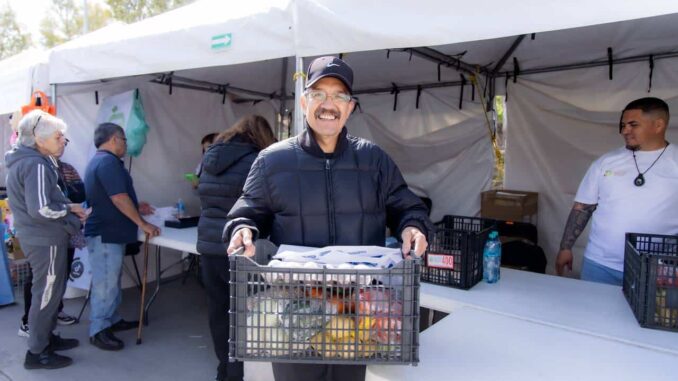 Chihuahua .- Para el fortalecimiento de la economía de las familias, el alcalde Marco Bonilla junto al equipo de la Dirección de Desarrollo Económico y Competitividad, llevaron el programa «Mercadito Más Barato” a la colonia Los Frailes.