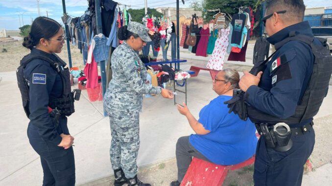Ciudad Juárez.- La Secretaría de Seguridad Pública Municipal, a través de la Dirección Especializada en Violencia Familiar y de Género (DEVIFG) y la Unidad Canina K-9, en coordinación con la Guardia Nacional, llevó a cabo diversos operativos en distintos puntos de la ciudad como parte de las acciones preventivas y de proximidad social.