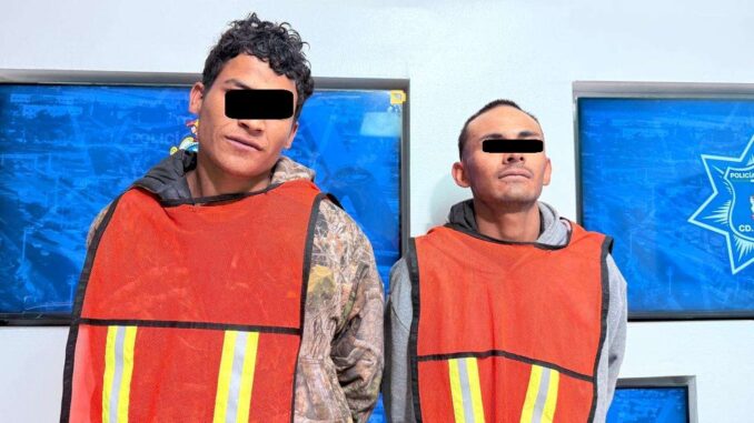 Ciudad Juárez.- Elementos de la Secretaría de Seguridad Pública Municipal, adscritos a la Estación de Policía del Distrito Sur, realizaron la detención de Jesús Arturo Z. G. y José Eduardo G. A., por su presunta responsabilidad en la comisión del delito de robo de autopartes en grado de tentativa.