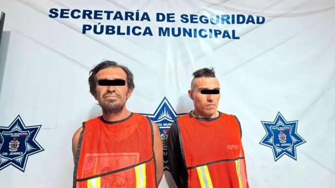 Ciudad Juárez -. Elementos de la Secretaría de Seguridad Pública Municipal adscrititos en la Dirección Especializada en Violencia Familiar y de Género (DEVIFG) arrestaron a Oscar Alberto B. S. y César C. A., por su presunta responsabilidad en la comisión de delitos contra el patrimonio municipal.