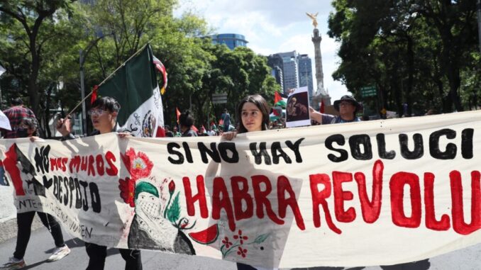 Cientos de personas participaron este domingo en la capital mexicana en la llamada marcha ‘México x Gaza’ para exigir un alto al fuego y la entrada de alimentos y medicinas a la Franja de Gaza, así como la ruptura de relaciones del Gobierno mexicano con Israel.