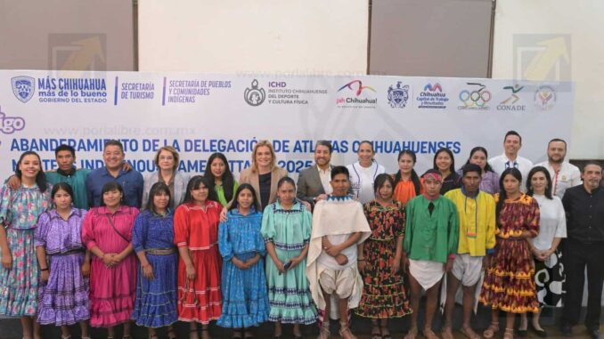 La gobernadora Maru Campos abanderó a la delegación de 18 atletas rarámuri, que participará en la cuarta edición de los Juegos Maestros Indígenas 2025 (ISWO, por sus siglas en inglés), que se llevará a cabo en la ciudad de Ottawa, Canadá