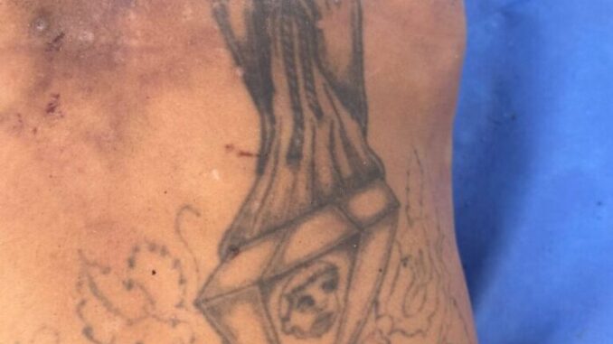 Como señas particulares, el cuerpo tiene un tatuaje de “La santa muerte” en el omóplato derecho.
