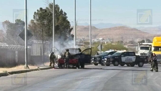 De acuerdo con el propietario, momentos antes había acudido a un taller de mofles para soldar el escape, y fue cuando circulaba por la salida a Delicias que el vehículo comenzó a incendiarse. El conductor logró orillarse, pero en cuestión de segundos las llamas consumieron por completo la camioneta.