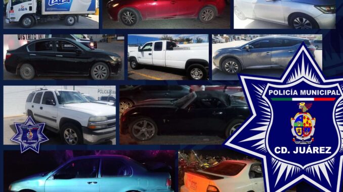 Ciudad Juárez .-Elementos de la Secretaría de Seguridad Pública Municipal, adscritos a los distintos distritos policiales, durante las últimas 48 horas lograron la recuperación de diez vehículos que cuentan con reporte de robo de días o meses atrás.