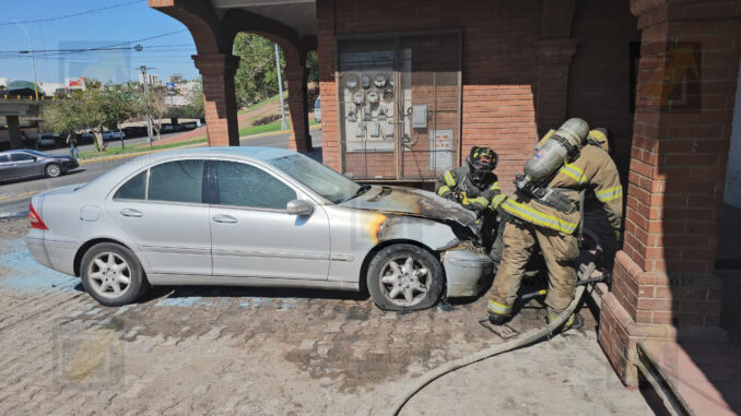 Chihuahua.- Un automóvil resultó con severos daños tras incendiarse este lunes en el cruce de las avenidas Independencia y Teófilo Borunda, lo que generó una rápida movilización de cuerpos de emergencia. Al lugar se presentaron unidades del escuadrón motorizado de la Policía Vial, tras recibir el reporte de un vehículo en llamas.