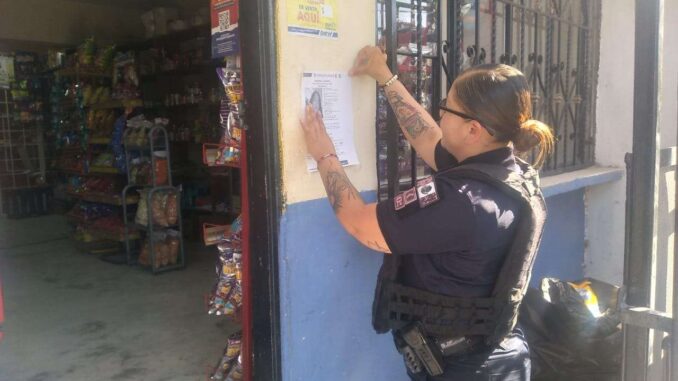 Ciudad Juárez .- Elementos de la Secretaría de Seguridad Pública Municipal a bordo de la unidad 834, llevaron a cabo la colocación de pesquisas en postes y locales comerciales del fraccionamiento Horizontes del Sur, con el objetivo de apoyar en la localización de Arely Gabriela Hernández Mata de 13 años, reportada como extraviada el pasado 19 de mayo de 2025.