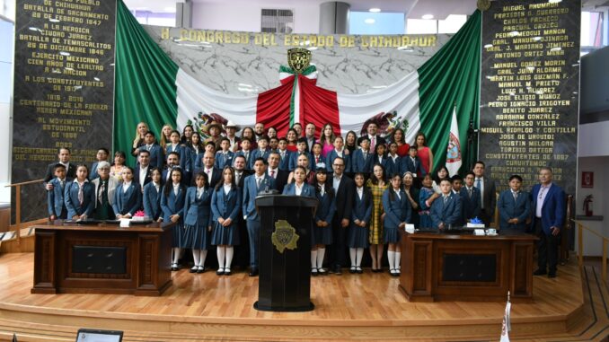 Chihuahua  .- Este 30 de abril en el marco de la conmemoración del Día Mundial del Niño, como cada año el Congreso del Estado de Chihuahua llevó a cabo la Sesión de Homenaje denominado “Diputada y Diputado Infantil por un día 2026”, en la que 33 alumnos que cursan el 6º grado de educación primaria tomaron las curules del Poder Legislativo.