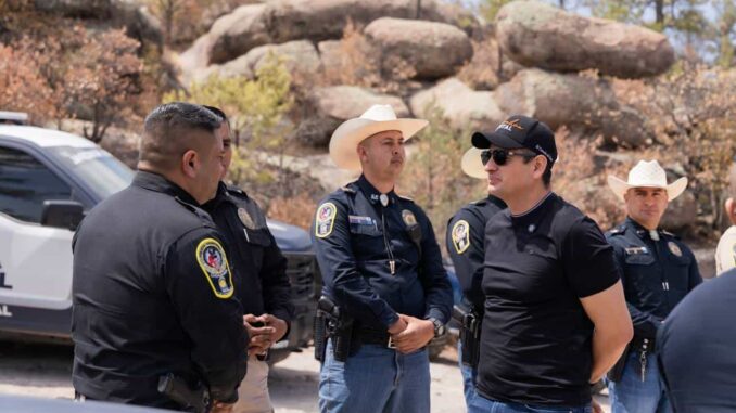 Chihuahua.- El alcalde Marco Bonilla, realizó pase de revista y supervisó el operativo por Semana Santa que se efectúa por parte de la Dirección de Seguridad Pública Municipal (DSPM) en el Parque Nacional Cumbres de Majalca, uno de los lugares turísticos más concurridos en estas fechas.