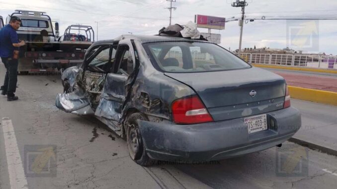 El incidente ocurrió en los carriles que van de sur a norte, a la altura de la calle Haciendas del Valle, cerca de una conocida tienda de autoservicio. Según los primeros reportes, un automóvil Nissan Altima, modelo antiguo, quedó prensado entre un tráiler de carga y la barrera de contención, lo que provocó una movilización inmediata de cuerpos de emergencia.